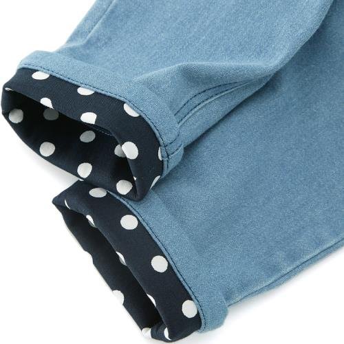 - 素材:本体/綿62%・ポリエステル36%・ポリウレタン2% ドット柄部分/綿94%・レーヨン4%・ポリウレタン2% パウダータッチデニム