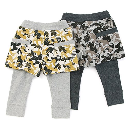 ☆大人気!mother goose動物シリーズ☆何がいるかな?いろいろな動物たちが隠れたカッコかわいい迷彩柄♪重ね着風パンツでさらにカジュアルに☆にぎやか過ぎないカラーが使いやすい一枚です♪おそろいコーデも楽しめる♪