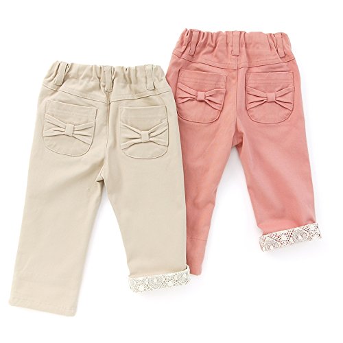 しっかりした素材感ながらストレッチの効いた動きやすい一枚゚*☆シンプルで飽きのこないデザインに、裾は折り返すとレースがのぞく女の子らしい仕上がり*。♪優しい色合いで長く使えるパンツです゚*☆