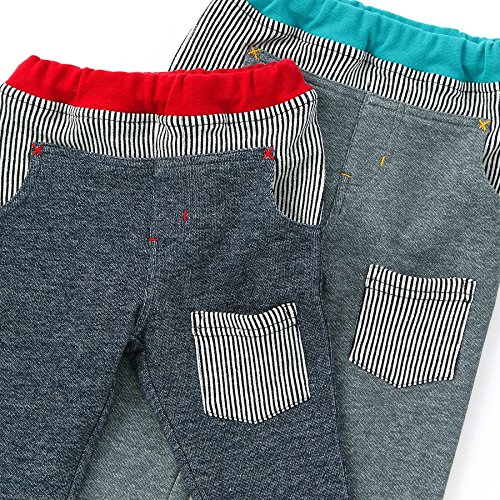 シンプルなアメカジスタイルを楽しめる毎シーズン好評のデニムニットのパンツ♪♪伸縮性に富んでいるデニム調ニット素材のパンツは動きやすく、ウエストはゴム仕様だからお着替えしやすいのも◎ 本体綿100%☆