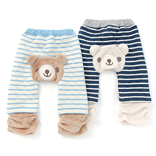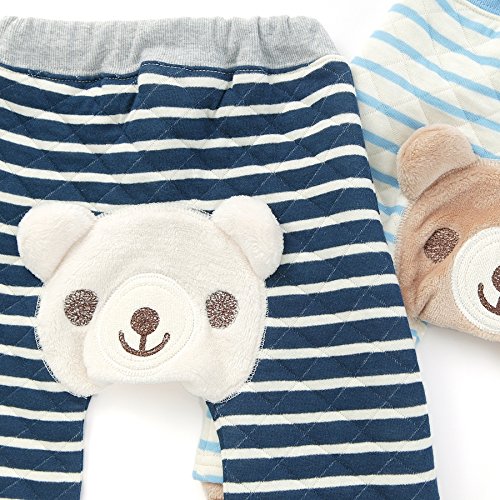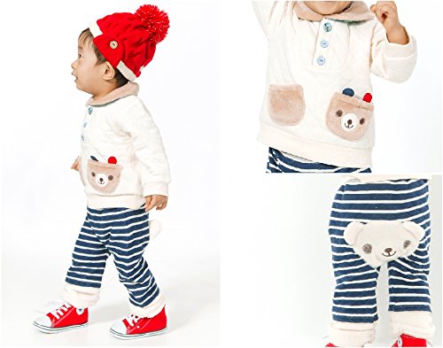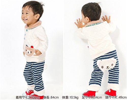 あたたかくて優しい肌触りのニットキルトボーダー素材のモンキーパンツ♪裾のくしゅくしゅとなった部分もボア使いで足口もあたたか♪お尻にはくーたんがいるよ♪ハイハイ期はもちろん、たっちになってもうしろ姿をとても愛らしくしてくれます(*^_^*)
