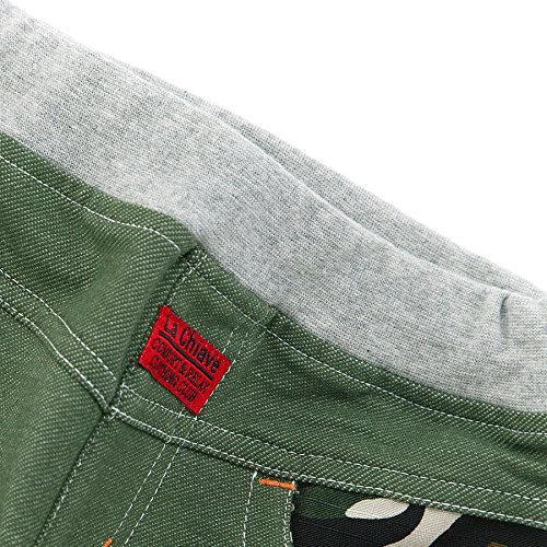 - 本体/綿65%・ポリエステル30%・ポリウレタン5% ウエスト部分/綿95%・ポリウレタン5% カーキ…迷彩柄布部分/ポリエステル100% ネイビーブルー…チェック柄布部分/綿100%