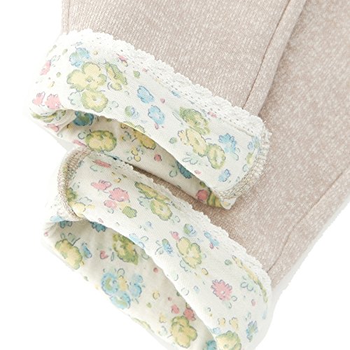 柔らかいメランジュ風の色合いの裏毛素材です☆柔らかい素材なので着脱簡単!足口の折り返しの花柄プリントがポイントです♪