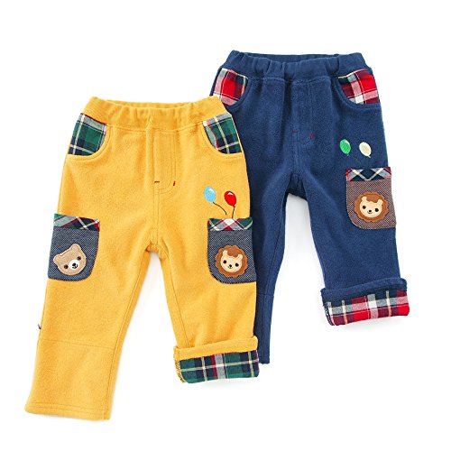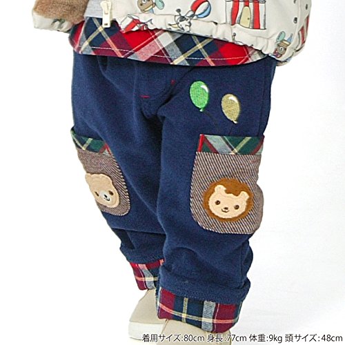 起毛素材長丈パンツ☆裏も起毛であったか☆チェック使いやくーたん、ライオンくん使い、ポケットの風船刺繍など遊び心がつまったデザイン♪
