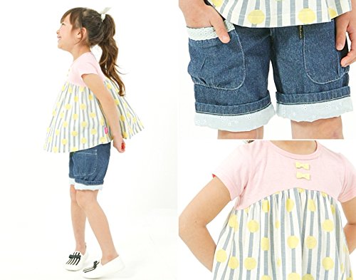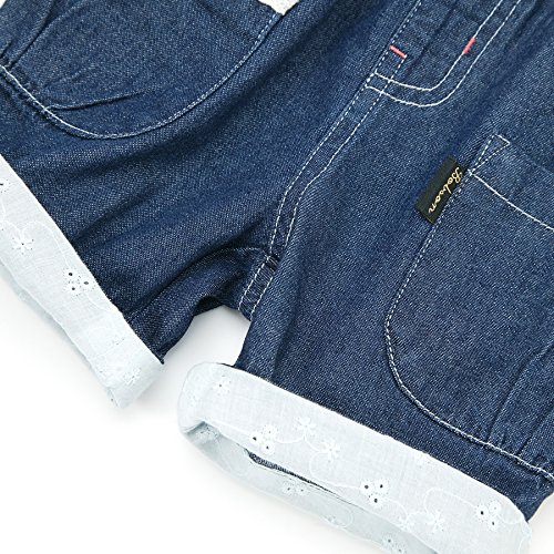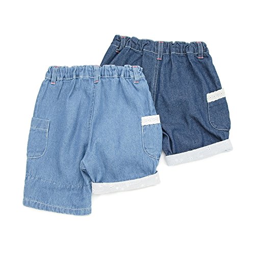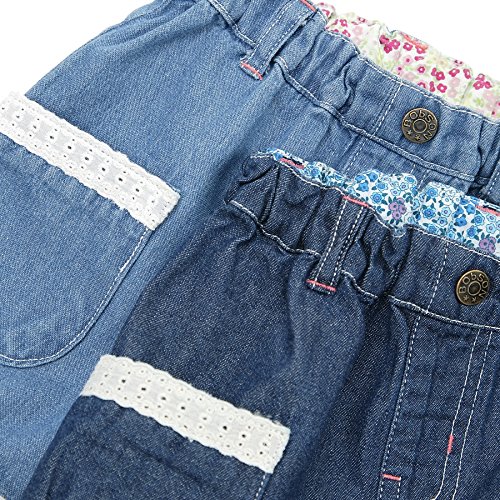 可愛いレースや花柄プリントが女の子らしいデニムのハーフパンツはコーディネートも選ばない優等生☆アシンメトリーなデザインポケットがおしゃれポイントです♪