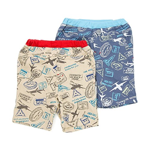 飛行機とスタンプがおしゃれなエアメール柄のハーフパンツ☆彡シンプルなトップスとのコーディネートでもカッコよく決まります★やわらかなメリヤス素材ではき心地もバツグンです!!