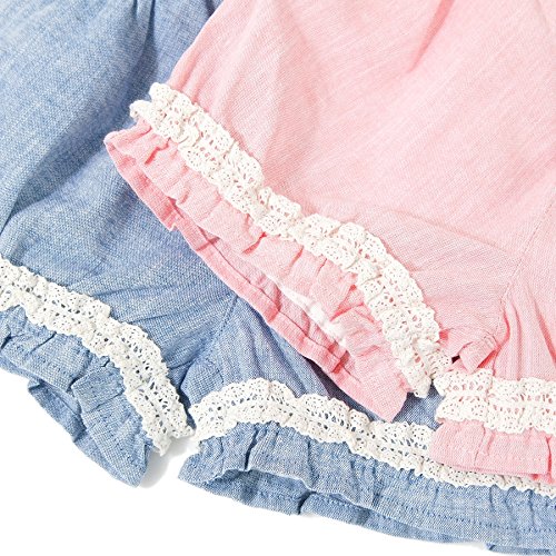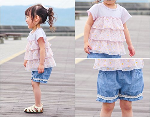 ダンガリーの定番ショートパンツは、たっぷりギャザーのコロンとまるみのあるフォルムがポイント☆レース使いがキュートでさわやかな仕上がり*.・♪