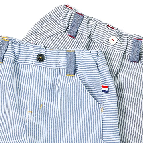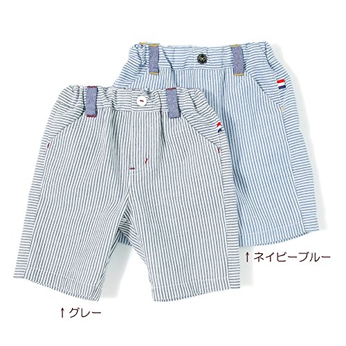 凹凸かんがあるしわ素材のストライプ柄が爽やかなパンツです♪通気性に優れ、涼しい上に丈夫で扱いやすい素材を使用しました♪♪シンプルなデザインなのでどんなコーディネートにも好相性◎