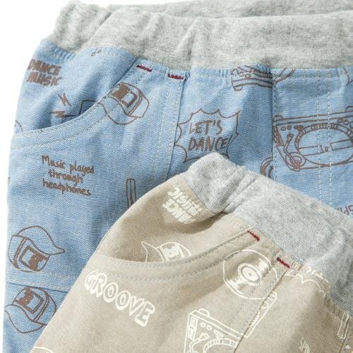 ヘッドフォンやレコードなど楽しいプリントが目を引くハーフパンツ♪サラっとした履き心地は暑い季節にピッタリ☆何にでも合わせやすいベーシックな色合いなので、お手持ちのトップスとも相性OK!