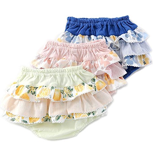 リリィアイボリーらしい異素材フリルの愛らしいブルマ♪今季はトロピカルなイメージのお花柄とレモン柄×ストライプで爽やかに\(^^ )♪ベビーの可愛さが満載♪