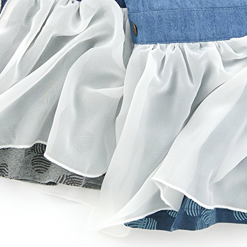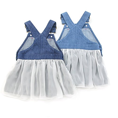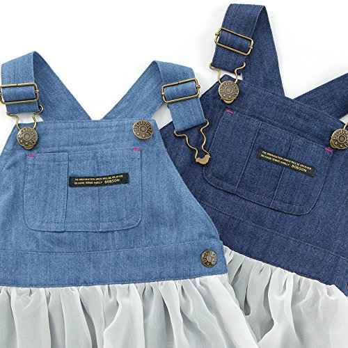 デニム素材のジャンパースカートはカジュアルスタイルの定番☆ふんわりシフォンスカートがとびきりガーリーなシルエットに*.・♪中スカートは伸縮性のあるベア天竺素材だから、はきごこちも◎デス☆゚+.