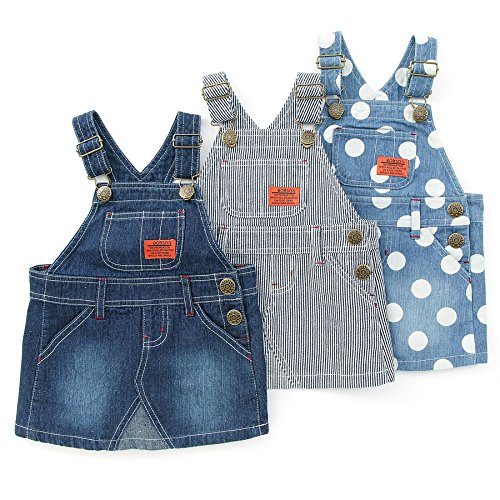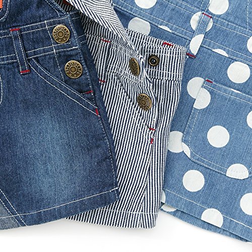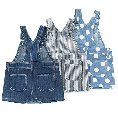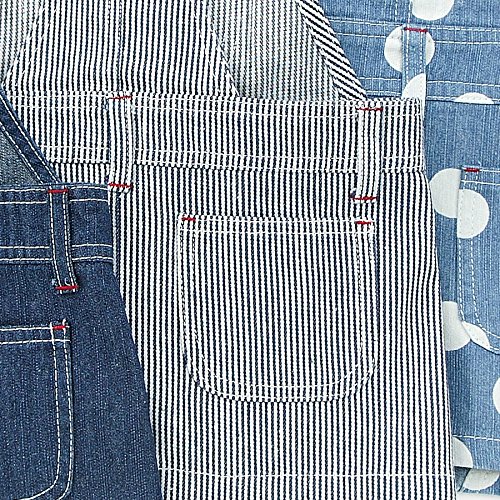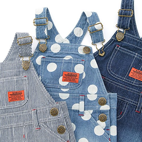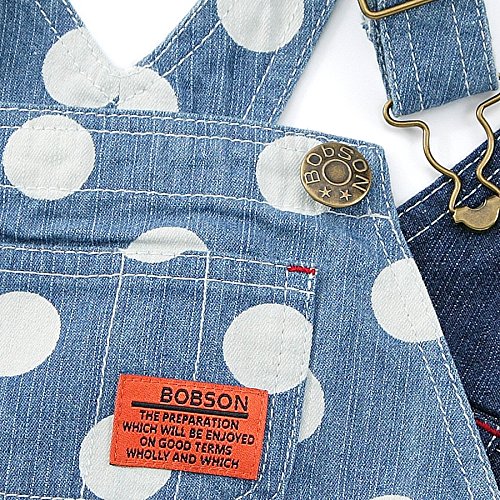 BOBSONらしいデニムのジャンパースカート★シンプルかつ丈も程よく、コーディネートが楽しくなる一枚です!可愛らしさ全開ドット柄のブルーとおしゃれなストライプ、合わせやすい定番のネイビーブルー♪