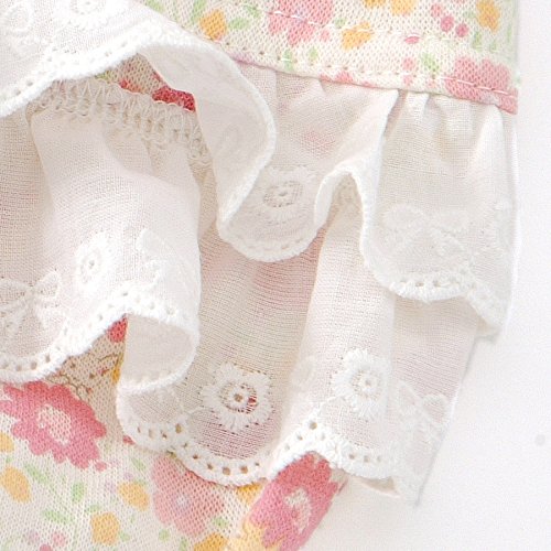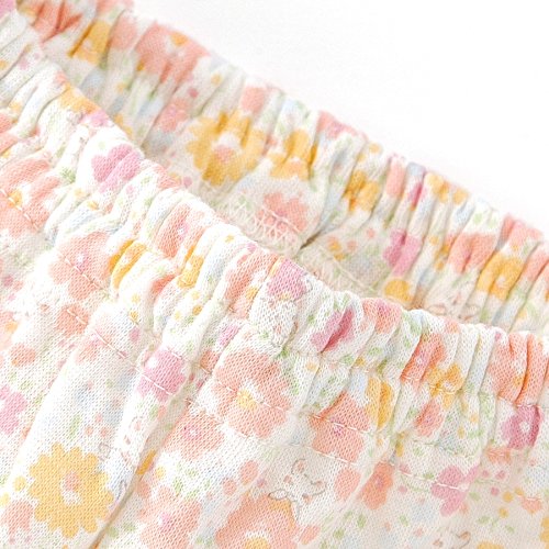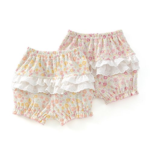 お花畑のような小花柄のブルマ♪うさぎちゃんのアップリケや後のふりふりレースがキュート♪ベビーらしいぷっくりシルエットで前はもちろん後ろ姿も可愛さいっぱいです♪