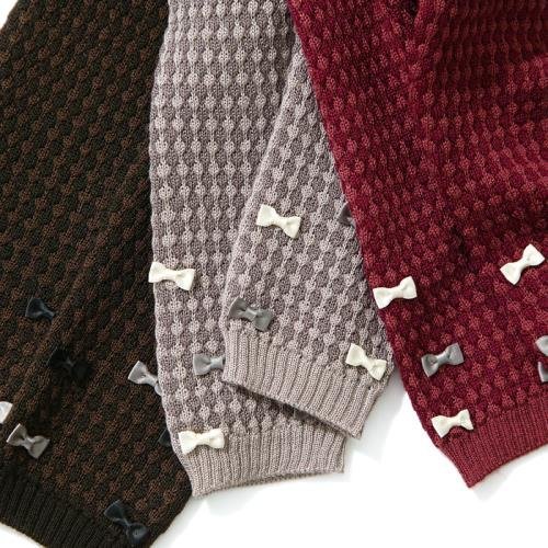 - 素材:本体/アクリル85%・毛15% 合皮ネーム/合成皮革 裾リボン部分/ポリエステル100% ニット