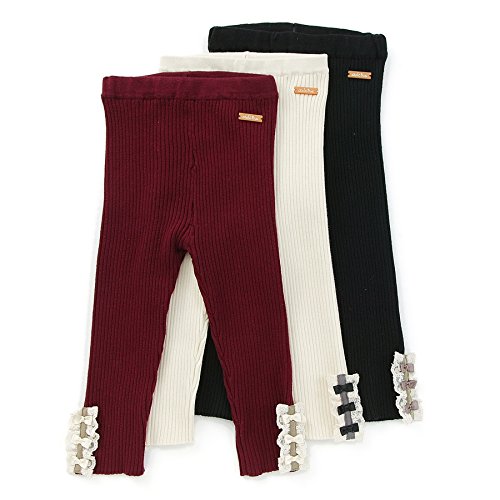 裾のレースとリボン使いが何ともガーリーなニットレギンス♪綿ニットなのでデイリーアイテムにぴったりです!