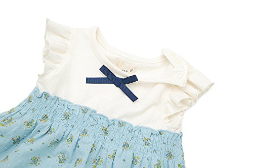 タック天竺カットソーと花柄のカットボイル生地をあわせた、爽やかドッキングワンピース。トップ部分がカットソーなので、着やすさ抜群です。お袖についたフレンチスリーブも、華やかさをひきたてます。