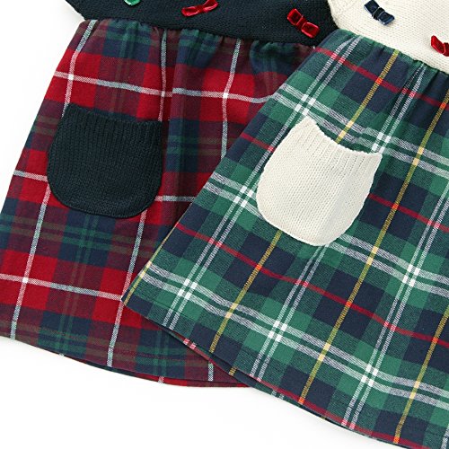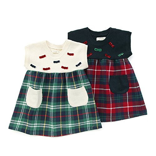 ニットの身頃+チェック起毛のスカートのドッキングワンピースはリボンがポイントのシンプルかわいいデザインです(*^_^*)