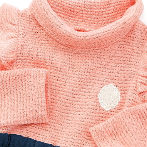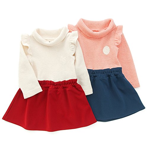 あったかーいハイネックのドッキングワンピ♪おでかけにも普段着にも着れちゃう便利な一品☆胸の刺繍アップリケはエレガントにロゴとお花をあしらってみました♪