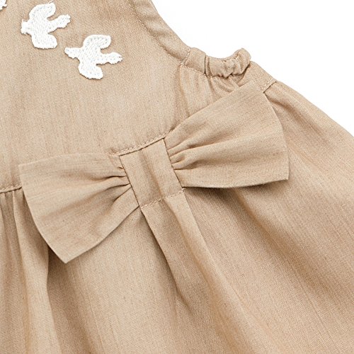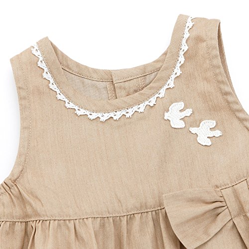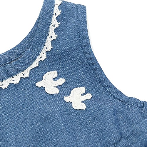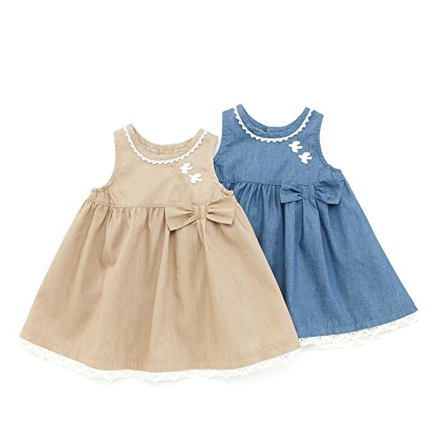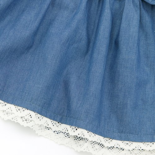 爽やかなシャンブレー素材のワンピースに小鳥のレースワッペンがさりげなくおしゃれ♪繊細なレース使いと大きなリボンもポイントです!(^^)!