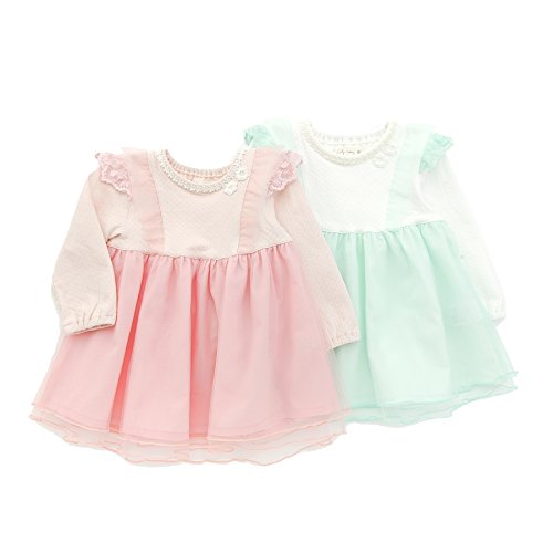 ふんわり柔らかいチュールをふんだんに使用したワンピース♪衿元にはお花のレース、春色をイメージさせるピンクやグリーンの2色をご用意しました(*^_^*)