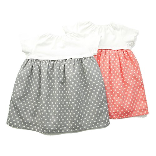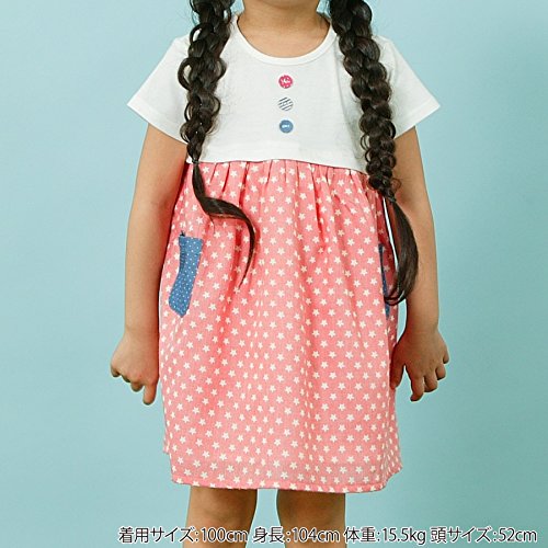 カジュアルキュートなスタープリントのおしゃれなドッキングワンピース☆ドット柄のデニムポケットがスタープリントにベストマッチ!!ハイウエスト切り替えでお着替え楽チン♪