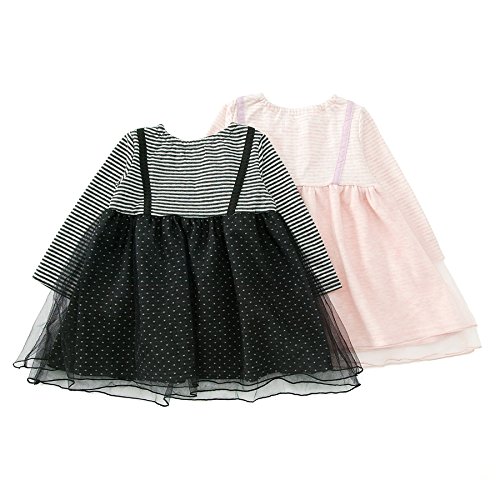 柔らかな接結ボーダー素材に、トレンドのチュール素材を重ねたトレンドのワンピース☆彡ふんわりとしたシルエットが女の子らしい1枚です。やさしいピンクと、合わせやすいブラックでどちらもおススメ♪