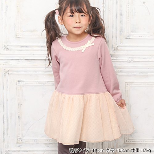 スカート部分のドットのチュールと衿元のレースが上品なワンピース(*^^*)裏起毛のあったか素材なのでお出かけ着にもピッタリです☆★