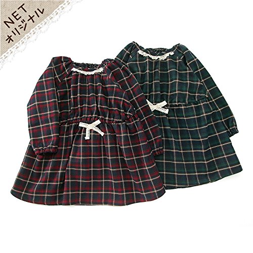 ネル素材のチェック柄ワンピでほっこり秋スタイル☆彡ウエストのレースリボンがポイントです♪♪