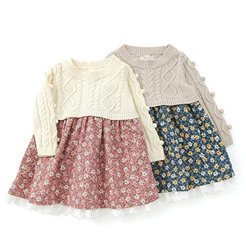 コットンニットと花柄スカートのドッキングワンピースは着脱簡単仕様です(*^_^*)ちょっぴりお嬢様気分のワンピースです☆彡