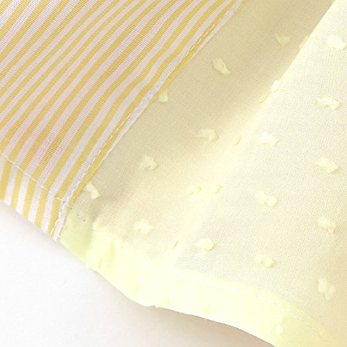 - レース生地部分/ナイロン51%・綿49% 無地生地部分/レーヨン100% 前見頃見返し布・肩紐・後ベルト布/ ポリエステル81%・綿19% レース部分/綿100% ストライプ生地部分…ピンク・ブルー/ポリエステル58%・綿35%・レーヨン7% イエロー/綿100% ドット柄生地部分…ピンク・ブルー/レーヨン100% イエロー/綿100%