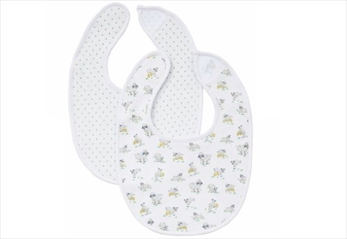 コットン素材のベビービブの2枚セット。総柄とワンポイント柄の2枚のセットでかわいさも倍に。やわらい素材でお子様のお口まわりの汚れやよだれを拭くのに使用できます。こんなにラブリーなビブをつければ赤ちゃんだけでなくママも心がウキウキしちゃうこと間違いなしです☆お友達へのプレゼントやご出産祝いにお揃いの柄のロンパースといかがですか☆★☆ 素 材 100%コットン(伸縮性あり) サイズ 長さ:22cm×幅:22cm 輸入元 イギリス ご注意 ※洗濯機で洗えます