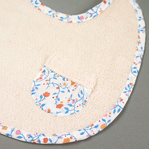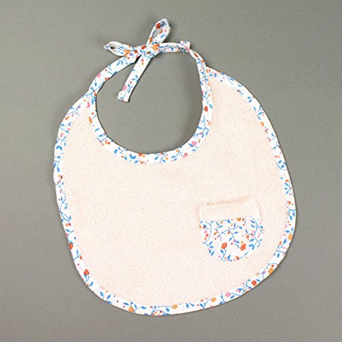 オリジナルの小花柄の生地をバイヤスで縁取り、優しいイメージに仕上げたベビーウェアです。※サイズ・24x27cm※素材綿100%