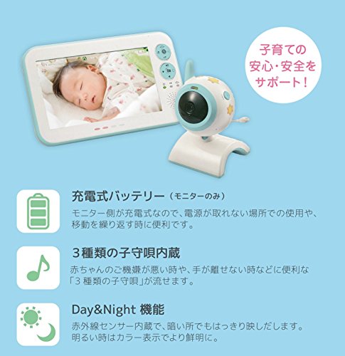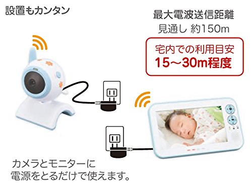 - 電波見通し距離約150m、Day&Night機能(赤外線センサー内臓で、暗い場所でもはっきり映し出します、明るいときはカラー表示でより鮮明に。トークバックや子守唄再生ができ赤ちゃんを安心させることができます。