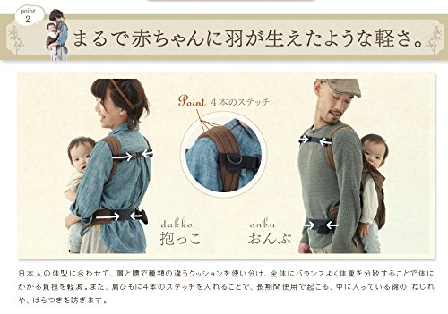 日本人の体形に合わせたコンパクトなおんぶ抱っこひも。ごつくないので、着けたままでもコートやジャケットも上から羽織ることができます。