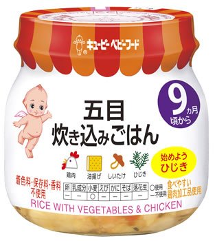 ●【商品説明】●「キユーピー 五目炊き込みごはん 100g 9ヶ月頃から」は、鶏肉、野菜類、油揚げ、ひじきなどの具材を、お米と一緒にかつおと昆布のだしで炊き上げました。●着色料、保存料、香料不使用。●【原材料に含まれるアレルギー物質】●小麦●【使用上の注意】●よく混ぜて召しあがってください。●そのままでもおいしく召しあがれます。●時間の経過により、表面が変色することがあります。●食べる分量を別の容器にとり、残りはキャップをして冷蔵庫(1-10度)に入れ、その日のうちにお使いください。●必要な分量に小分けし、冷凍保存できます。●電子レンジをご使用の際は、別の容器にとり、ラップをかけて温めてください。●※温めた後に、中身がはねてヤケドをする恐れがありますのでご注意ください。●※過加熱は発火・発煙の恐れがありますので、ご注意ください。●※お子さまにあげる前に温度をお確かめください。●乳児用規格適用食品●【保存方法】●開栓前は直射日光を避け、常温で保存●【原材料名・栄養成分等】●名称:米飯類●原材料名:野菜(たまねぎ、にんじん、だいこん)、米(国産)、コ...