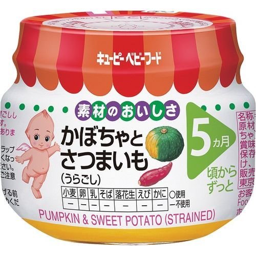 [キューピーベビーフード かぼちゃとさつまいも(うらごし)]は、国産のかぼちゃとさつまいもをなめらかに裏ごししました。素材として幅広くお使いいただけます