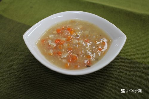 - 原材料:野菜(だいこん、にんじん、さといも、たまねぎ、ごぼう)、鶏肉加工品(鶏ささみ、じゃがいもでん粉、食塩)、コーンスターチ、大豆、しいたけ、こんぶエキス、食塩、かつお節エキス