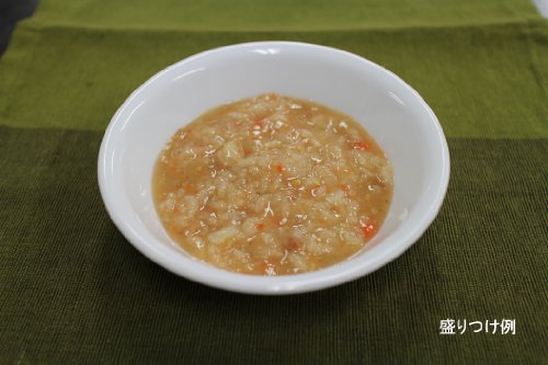 牛ひき肉、玉ねぎ、にんじん、じゃがいもが入ったほんのり甘めの雑炊です。ご要望の高い主食でうれしい食べきりサイズの100g入りです。