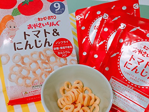 ●【商品説明】●「キユーピーおやつ おやさいりんぐ トマト&にんじん 4g×3袋入り 9ヵ月頃から」は、トマトとにんじんの風味と色合いをいかし、やさしく自然な味わいに仕上げたベビーフード 菓子(9ヶ月頃から)です。●油を使わずに、圧力と熱でふくらませた、口どけがよく軽い食感のおやつです。●砂糖・食塩不使用。●カルシウム入り。●着色料・保存料・香料不使用。●3袋入。●【お召し上がり方】●【あげ方】○食事の妨げにならないようにしてください。●○慣れない頃は、お子さまの口に水分を含ませてからあげてください。●○湯ざましや麦茶等と一緒にあげてください。●※お子さまが上手にかみくだき、のみこめるようになるまでは必ず見守ってあげてください。●※おんぶしたり、寝かせている時は、のどに詰まらせることがありますのであげないでください。●【ご注意】●本品のショ糖は原材料のにんじんパウダー等に由来するものです。●湿気をきらいますので、個包装開封後は袋の口をしっかりと閉めて、お早めに召しあがってください。●黒い粒がみられますが、原材料の一部です。●色合いにばらつきがありますが...