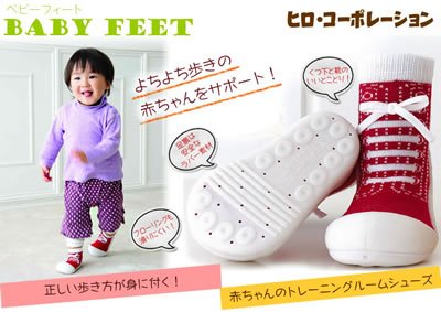 生体力学に基づき、赤ちゃんの足の形や動きを研究して作られた安心設計。靴下より保護力があって滑らず安全で、靴よりも軽いのでとっても歩きやすい!主な用途はルームシューズですが、底がラバーなので簡易の外履きとしてもご使用頂けます。(底に通気のための穴が空いていますので水気のある場所でのご使用はお控え下さい。)汚れたら洗濯機で洗えるので衛生的!