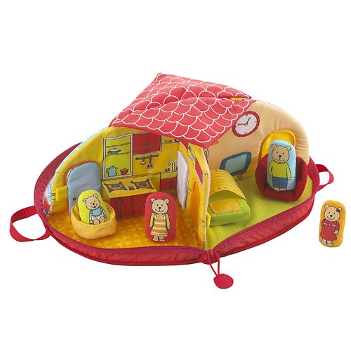 バッグから飛び出すクマさんのおうち。リビングキッチンなど4部屋に分かれて驚く仕掛けがいっぱい。クマさん一家とお出かけしているイメージです!