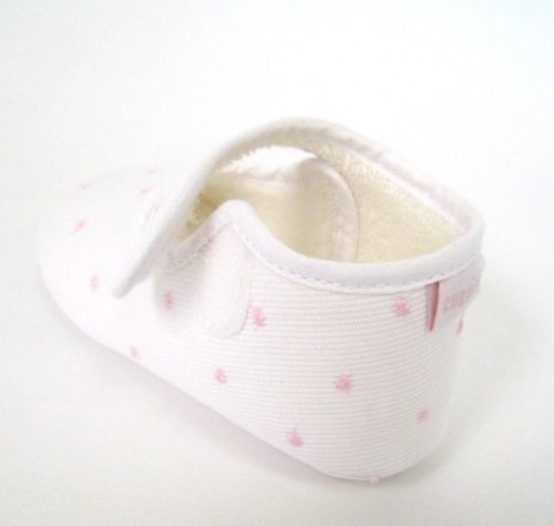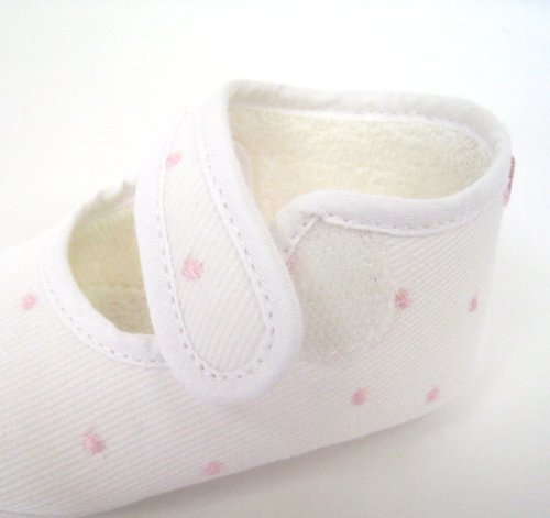 クキート ドット柄刺繍コットンマジックテープシューズ #20 ホワイト×ピンク 52422