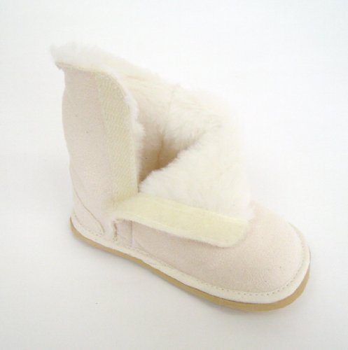 カラー:クリーム サイズ20(日本サイズ約11cm~11,5cm) 外寸:長さ約13,3cm、幅約6,3cm、高さ約10cm 素材:表/フェイクムートン、靴底/革、内側/フェイクファー 原産国:スペイン マジックテープ開閉