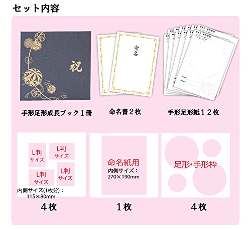 - サイズ:縦31cm×横31cm 厚さ約2.4cm 中枠9枚(命名書用1枚/写真用4枚/手形・足形用4枚) 命名紙2枚 手形・足形用紙12枚付き