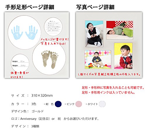 赤ちゃんの大切なお名前と共に、手形・足形・写真が残せるだけでなく、3歳までの手形・足形・写真も一緒に収納できる、0~3歳の成長記録命名BOOKです。 赤ちゃんが生まれたら、何を用意するの? 名前を決めたけど、命名書はみんなどうしてるの? 赤ちゃんの命名時に紙に書いて貼るだけではなんとなく・・・。 子供の手形・足形は残しておきたいもの・・・ 生まれた子供の為に、何か特別に記念になるものを残しておきたい。 この商品は生まれてきた子供の為に、特別なメモリアル商品をお探しのご家族の為に作られた、命名・手形・足形・成長記録写真台紙です。 産後の忙しい時でも、簡単に誰にでも作れます。 命名紙に名前を書く時間の無い方には、可愛くデザインされた命名プリントも同時に販売いたしておりますので、ぜひご利用ください。 表紙の色や・柄が選べて、生まれてきた子供の為のたった一つのオーダーメードです。 品質は安心の日本製。 弊社のオリジナル商品です。 自分で赤ちゃんの写真をプリントして、名前を書いた命名紙とともに台紙にはって、さらに生まれたばかりのかわいい手形・足形も一緒に残せる命名書としてだけでなく、3歳までの成長の記録として残せるうれしいBOOKです。 また親しい友人への出産祝いとしても人気です。プレゼント・ギフトに最適!!