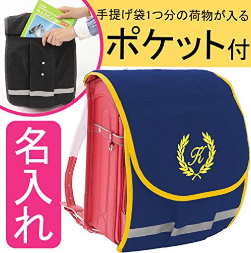 ランドセルカバー ポケット付き【ポケランカバー】葉【紺生地×イエローふち×黄色刺繍】オリジナル内・外ポケット付き 手ぶら 通学 登校 撥水 防キズ 名入れ 女の子 日本製 オリジナル 汚れやキズ、雨からランドセルをまもるちゃんとみえる沢山入る 当社発! 内外ポケットつきランドセルカバーで手ぶら登校!!反射テープつき 撥水素材使用 (サイズ大)