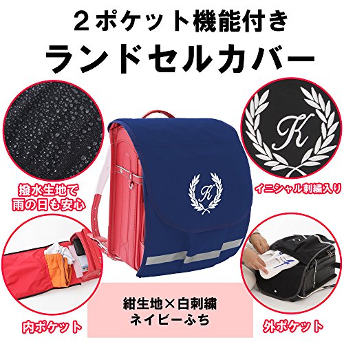(ランドセルのかぶせ部分を保護するもので、横から雨が入ることもあります。またイニシャルを刺繍しておりますので刺繍部分から雨が入ることもございます。完全防水ではございませんのでご了承ください。)
