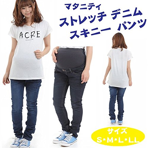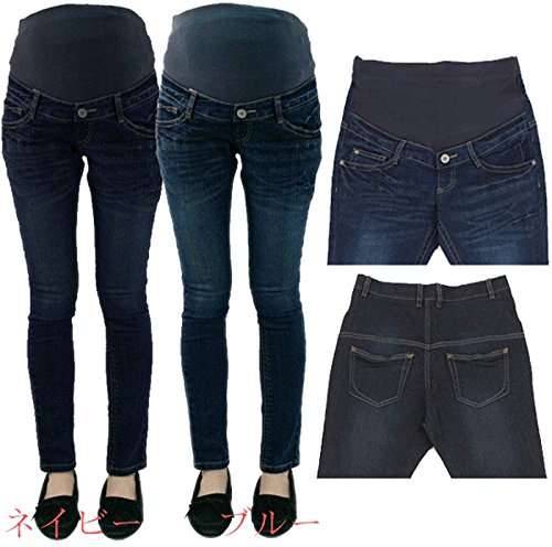 ain ストレッチデニム スキニー パンツ (ネイビー, L) 紺