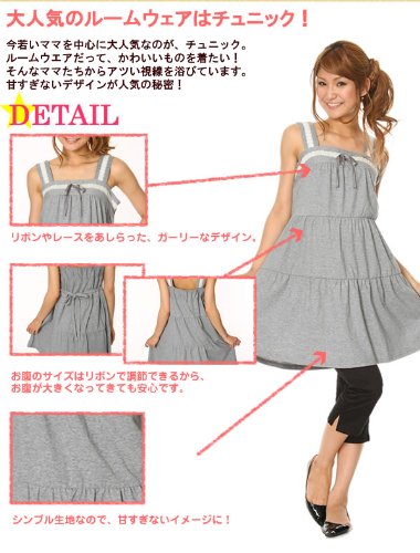 ルームウエアだって、かわいいものを着たい!そんなママたちからアツい視線を浴びている、チュニック。甘すぎないデザインが人気の秘密!お腹周りもゆったりなので、安心♪