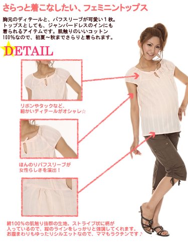 胸元のディテールと、パフスリーブが可愛い1枚。トップスとしても、インナーにもにも着られるアイテムです。肌触りのいいコットン100%なので、初夏~秋までさらりと着られます。